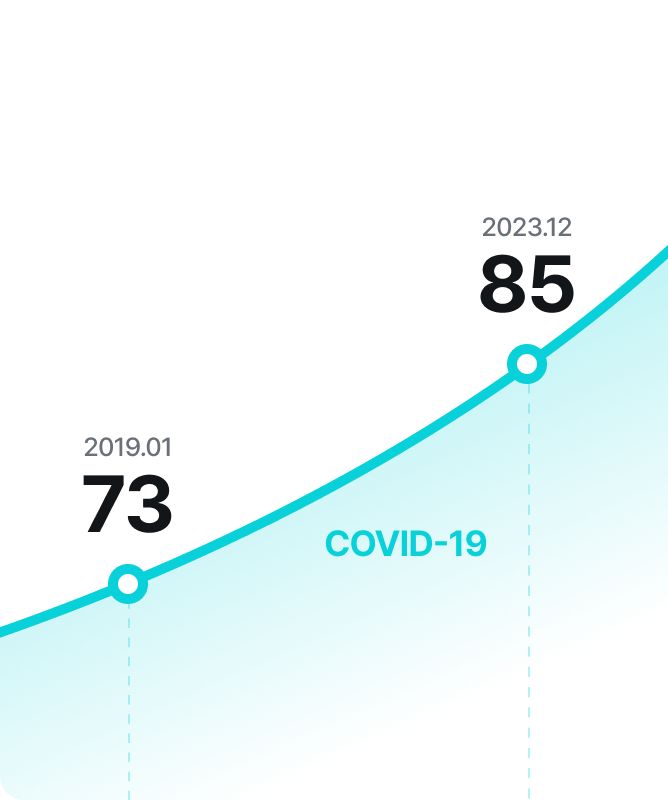 顾客满意度指数(HCSI)提高2019.01 732023.12 85COVID-19 -