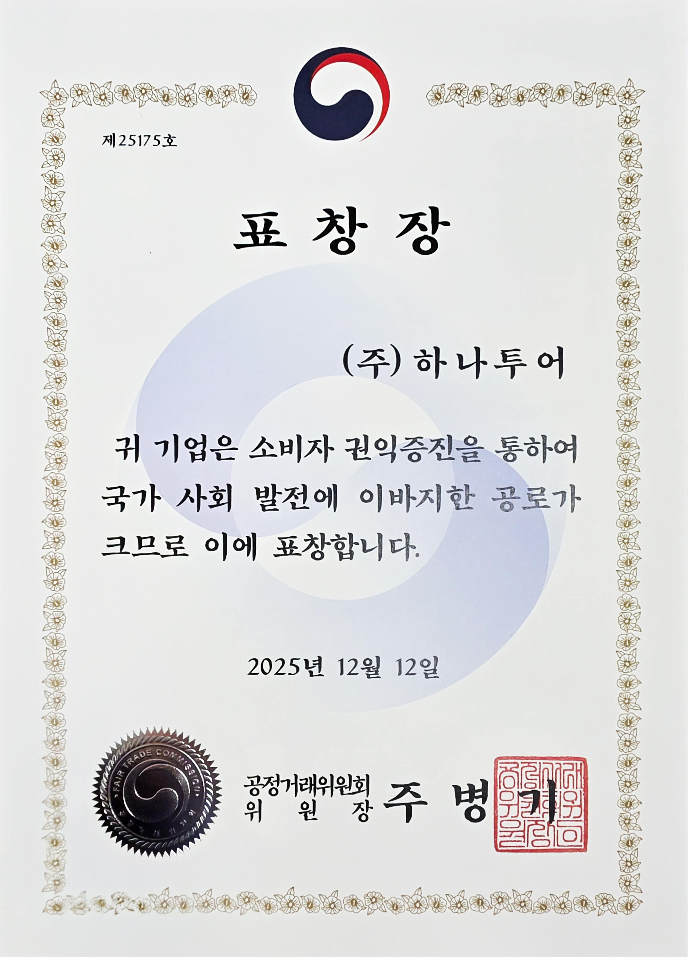 12월 소비자중심경영(CCM) 명예의 전당 공정거래위원장 표창 수상
