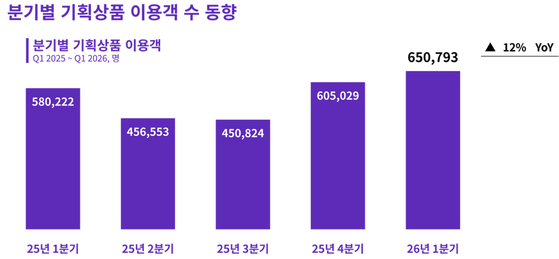 1분기 기획상품 이용객수는 약 65만명으로 전년대비 12% 증가하였습니다.