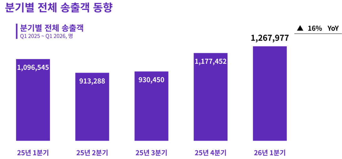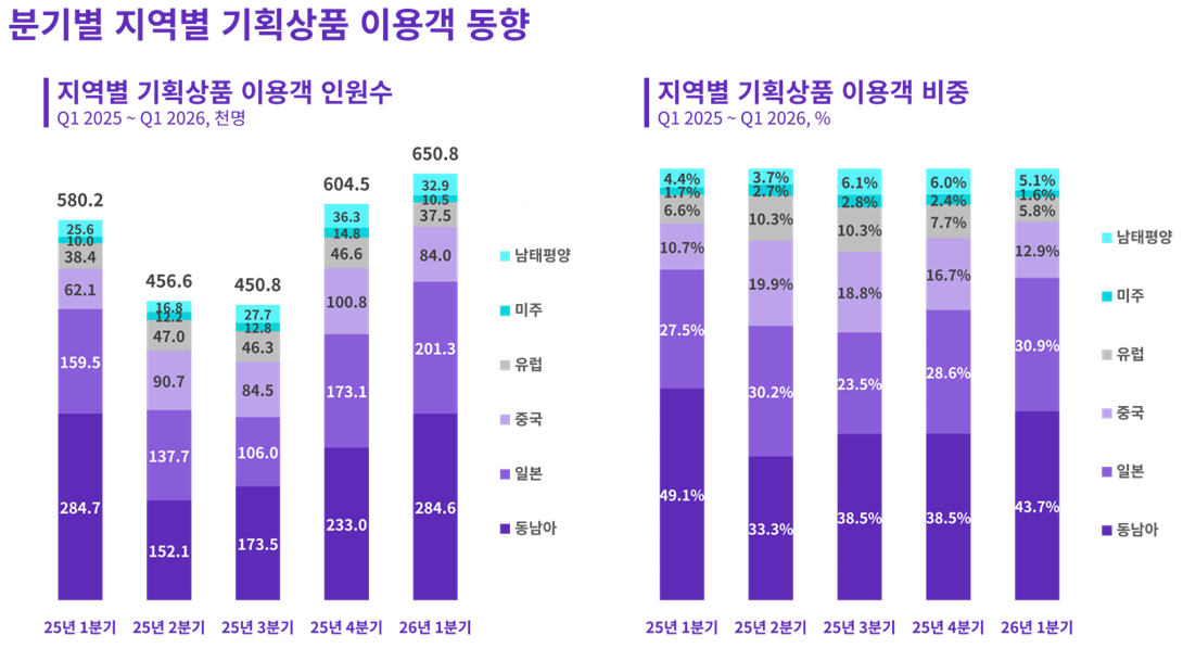 1분기 기획상품 이용객수는 약 65만명으로 전년대비 12% 증가하였습니다.